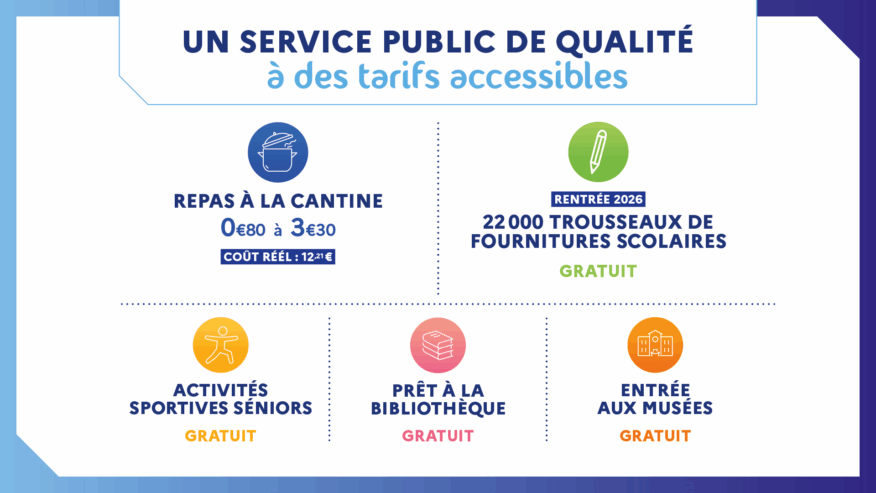 - 22 000 trousseaux de fournitures scolaires offertes aux élèves de la Ville.