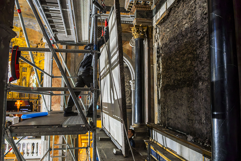 Comme pour les précédents retables, l’œuvre, une fois délicatement déposée, a été immédiatement transférée dans les locaux du Centre Interdisciplinaire de Conservation et de Restauration du Patrimoine (CICRP) à Marseille.