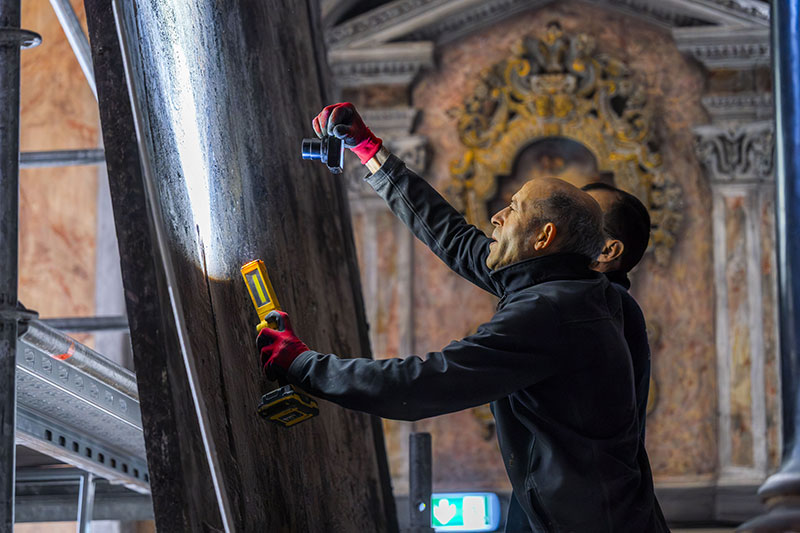 La première étape consistera à traiter l’œuvre par anoxie statique, pour éliminer les insectes nuisibles présents au plus profond du bois.