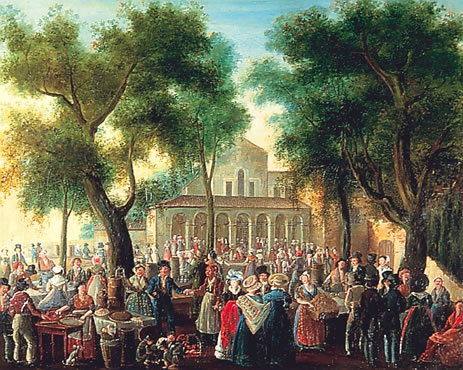 Le peintre niçois Clément Roassal (1781-1850) a laissé des charmantes vues de ces fêtes champêtres : Festin de Cimiez avec ses éventaires de mets populaires, Festin de Saint-Roch montrant la bourgeoisie niçoise banquetant pendant la nuit, Festin de li Verna représentant un quadrille traditionnel de paysans endimanchés dans les bois du Var, Festins de Saint-Barthélemy, du Ray et de Magnan…