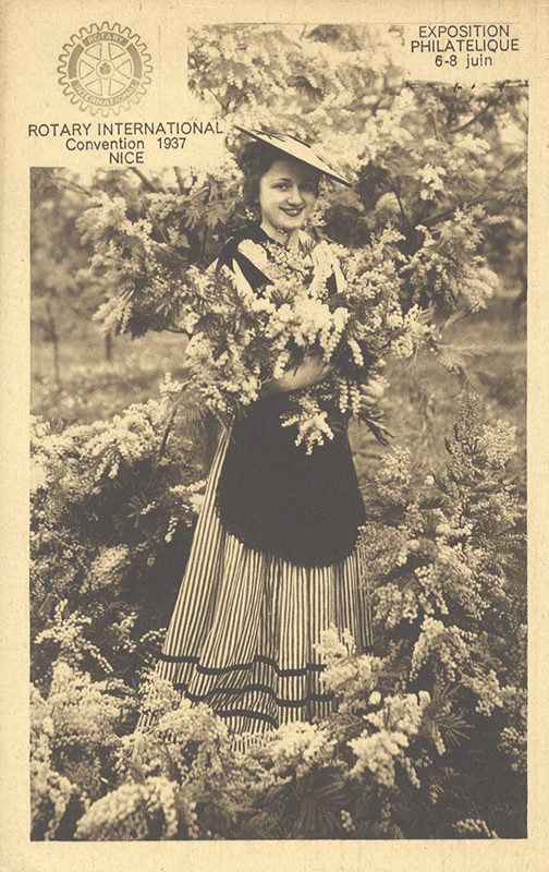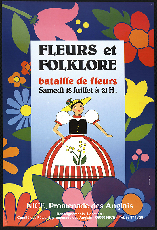 Pourtant, dès les années 1930, l’imagerie touristique réduit cette diversité à une Niçoise stéréotypée, tricolore (noir, blanc, rouge) et coiffée d’une capeline, ce qui en fait une icône aisément reconnaissable pour une clientèle internationale. Quant à la figure du Niçois qui s’impose à ses côtés, c’est celle du pêcheur méditerranéen tel qu’il était croqué sur les vues du rivage niçois aux XVIIIe et XIXe siècles : bonnet rouge, chemise à lacets et taïole retenant sa culotte.